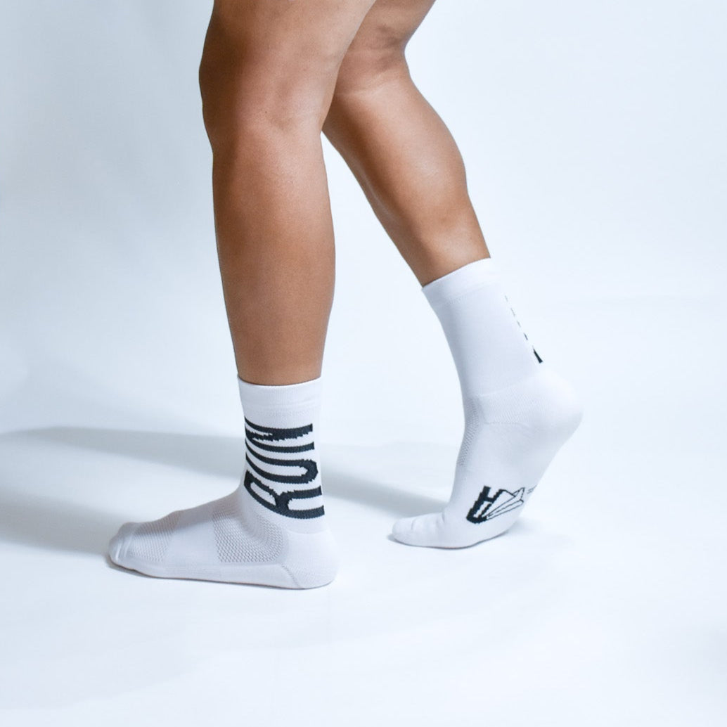 Calcetas deportivas Queen of the Mountain diseñadas para corredoras y corredores, con tejido respirable, ajuste cómodo y compresión media ideal para distancias cortas y largas.